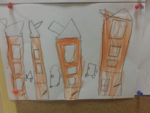 A rajzok is egyre kivehetőbbek, egyre jobban tudja kifejezni a ceruzával a gondolatait. Évekig küzdöttem, hogy színezzen már legalább egy alakot ki. De mindig visszautasított. A színezés fárasztó volt neki, nem értette ezt a mozgást a ceruzával. Most már bátrabban áll neki, persze túlzásba nem viszi….