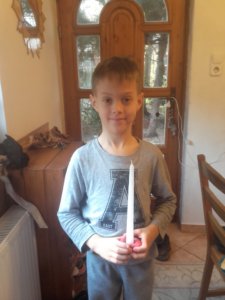 Nagyon szeret alkotni, olyan kreatív, a flakonokat félreteszi, vagy a papírokból összeragaszt valamilyen kreációt. A wc papír gurigából számtalan ötlete van. Szerintem ezt az ovinak is köszönheti, mert Csilla nénivel és Emese nénivel állandóan alkotnak valamit. Tetszik neki, hogy a keze közül kerülnek ki alkotások. Karácsonykor például gyertyatartót készített, ő festette, csillám-porozta és együtt vettünk bele egy gyertyát, ami pont jól passzolt bele: